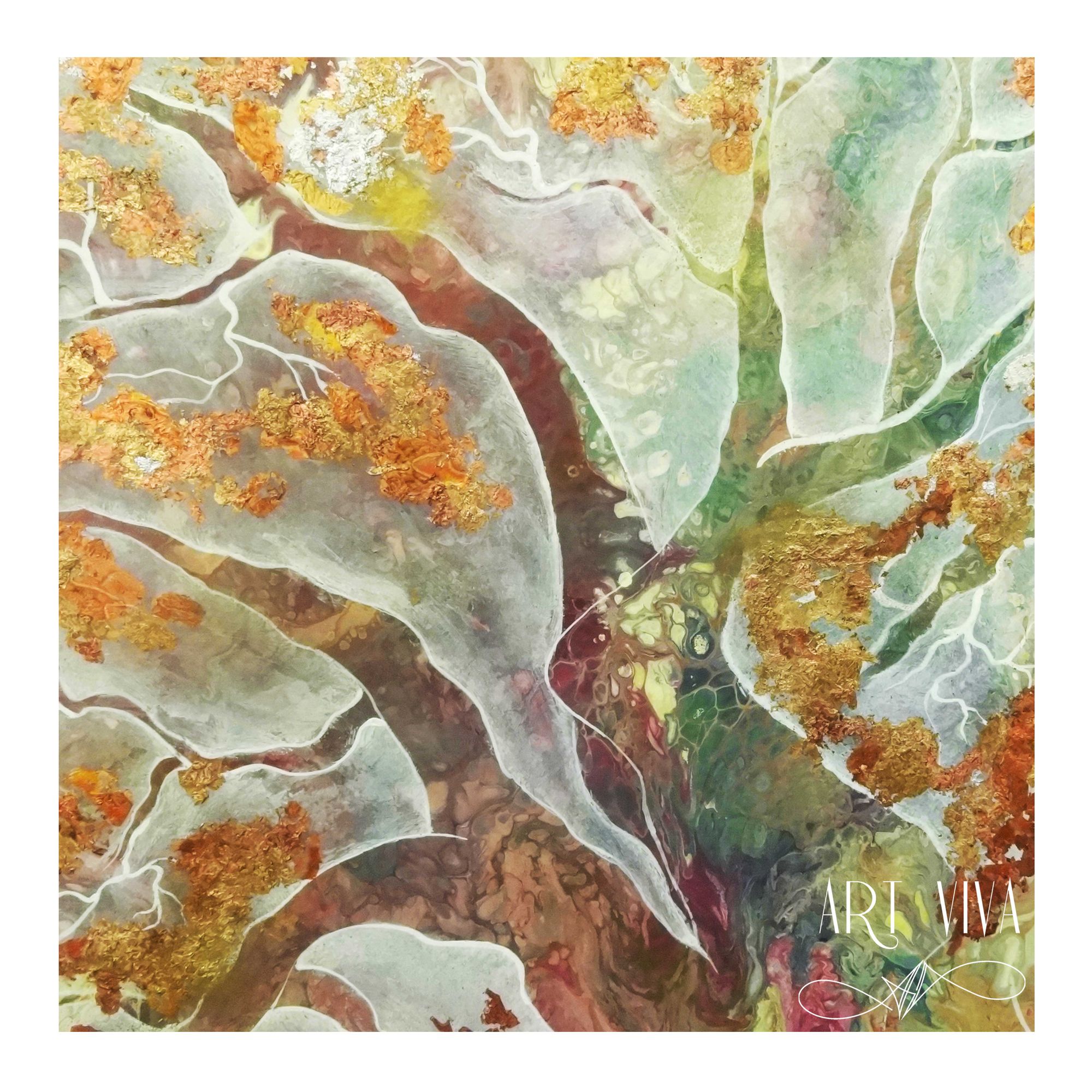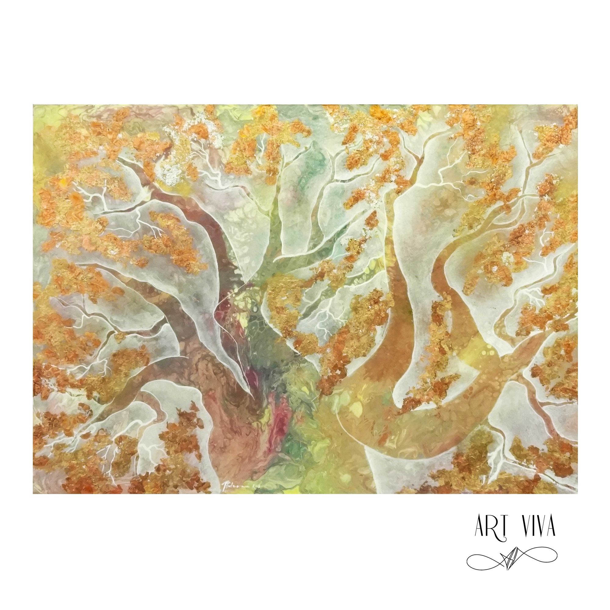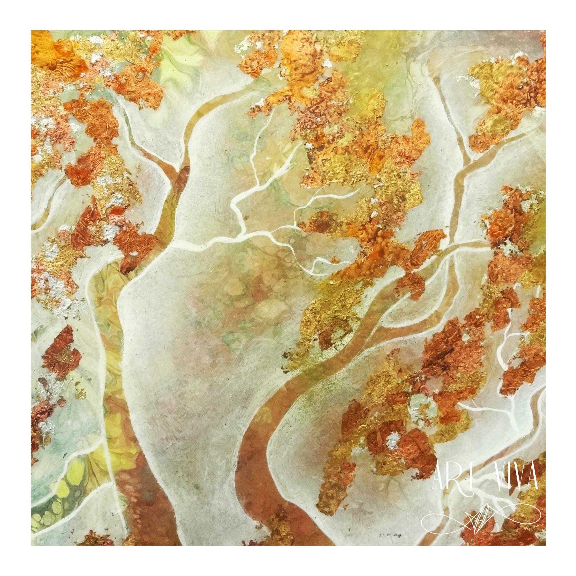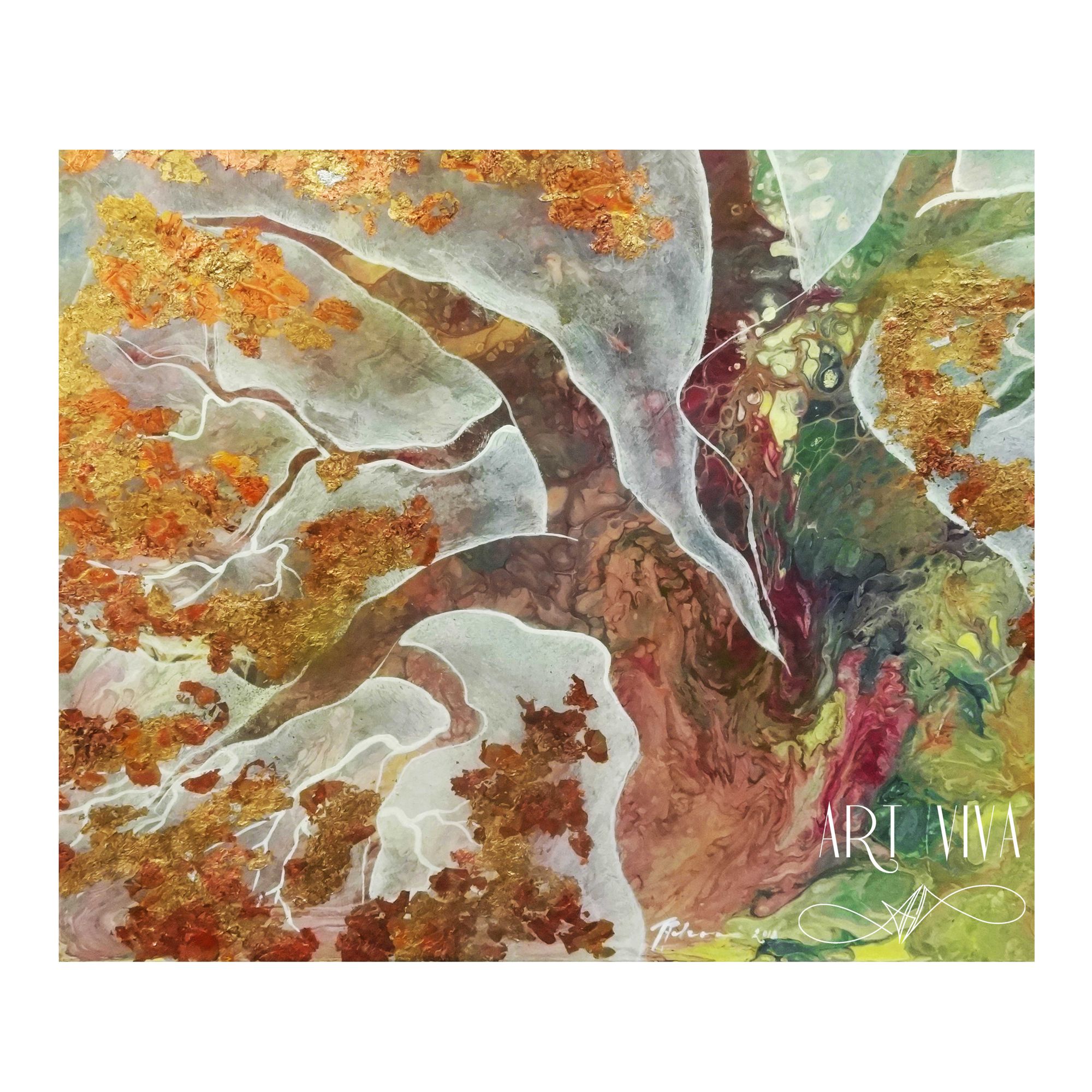 Zlatý strom života 2020 akryl na drevenom podklade 90x110 cm
